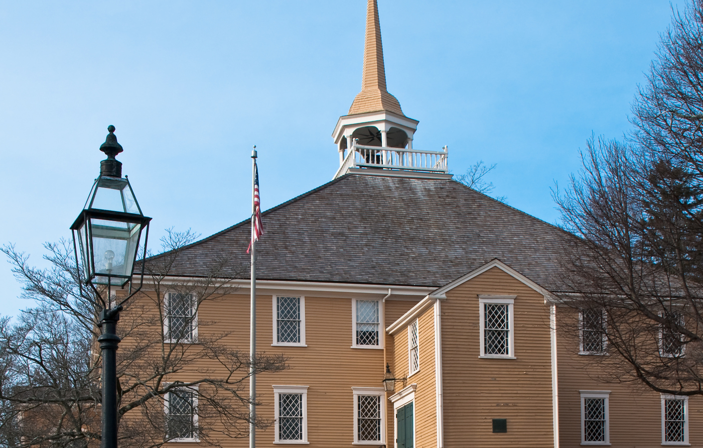 Hingham’s rich history dates back to the earliest days of European settlement in the new world. Shortly after the first Europeans arrived in 1633, a group of settlers from Hingham, England established one of the first significant European settlements in 1635 under the lead of Reverend Peter Hobart. Hingham became the 12th town in the Massachusetts Bay Colony to incorporate. In 1665, the Massachusetts Indians, weakened by plague and attacks by the Abanaki Tribe, granted the land "from the beginning of the world" to the settlers. This deed, bearing the mark of the Sachem Wompatuck, hangs in the Hingham Town Hall today. By 1681, Hingham’s 140 families raised money to build the Old Ship Meeting House which still remains in active use today as the oldest wooden church structure and the oldest church building in continuous use in America.